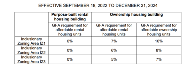 Ces pourcentages augmenteront en 2025, puis chaque année jusqu’en 2030. Alors que les logements locatifs construits à cet effet ne seront pas soumis à des exigences en matière de logements abordables dans la première phase de la politique, ils devront inclure des logements locatifs abordables en 2026.